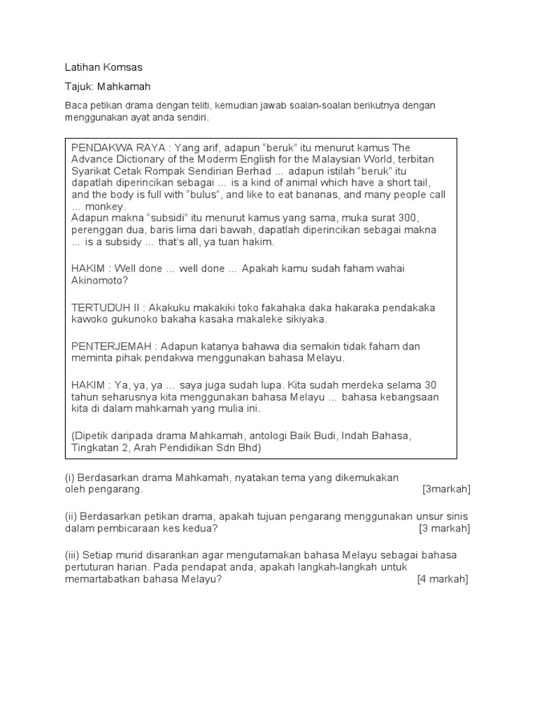 Contoh Karangan Tahun 2. APAKAH contoh soalan PKSK tahun 2022. Komsas Antologi Bahasa Melayu BM Tingkatan 1 2 3.